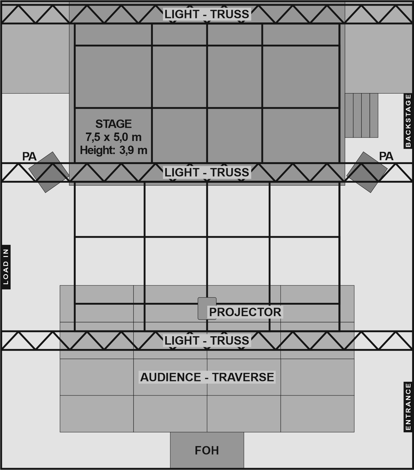 Sowohl der Backstage-Bereich als auch die Bühne sind ebenerdig erreichbar.